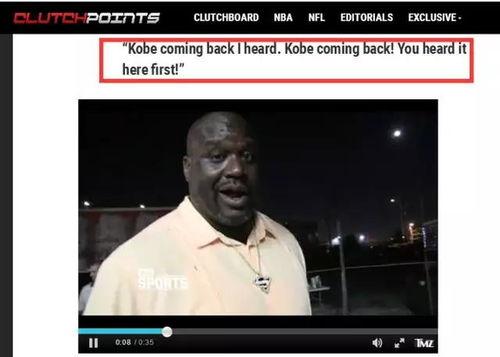 亲爱的读者们,今天我要跟你分享一个超级劲爆的消息,那就是奥尼尔爆料科比复出的视频!没错,就是那个曾经让整个篮球世界为之疯狂的科比·布莱恩特。让我们一起来看看这个视频,感受一下科比复出的激动心情吧!